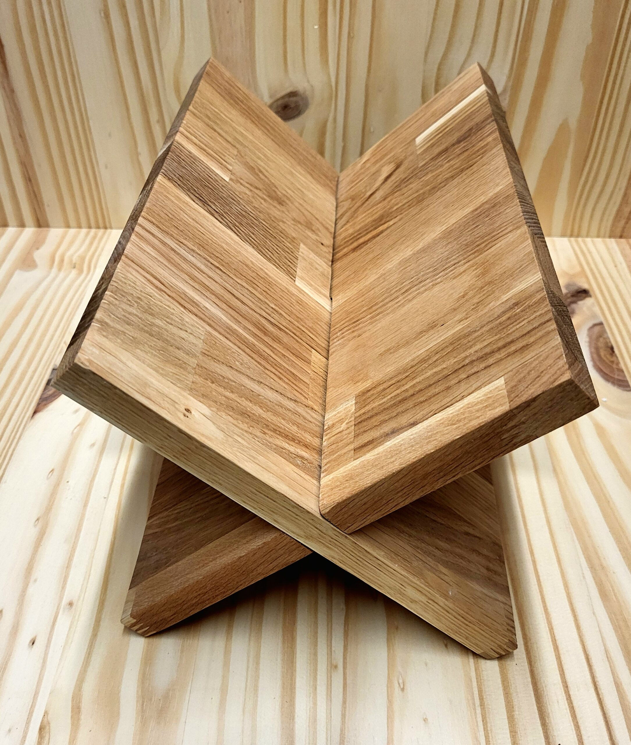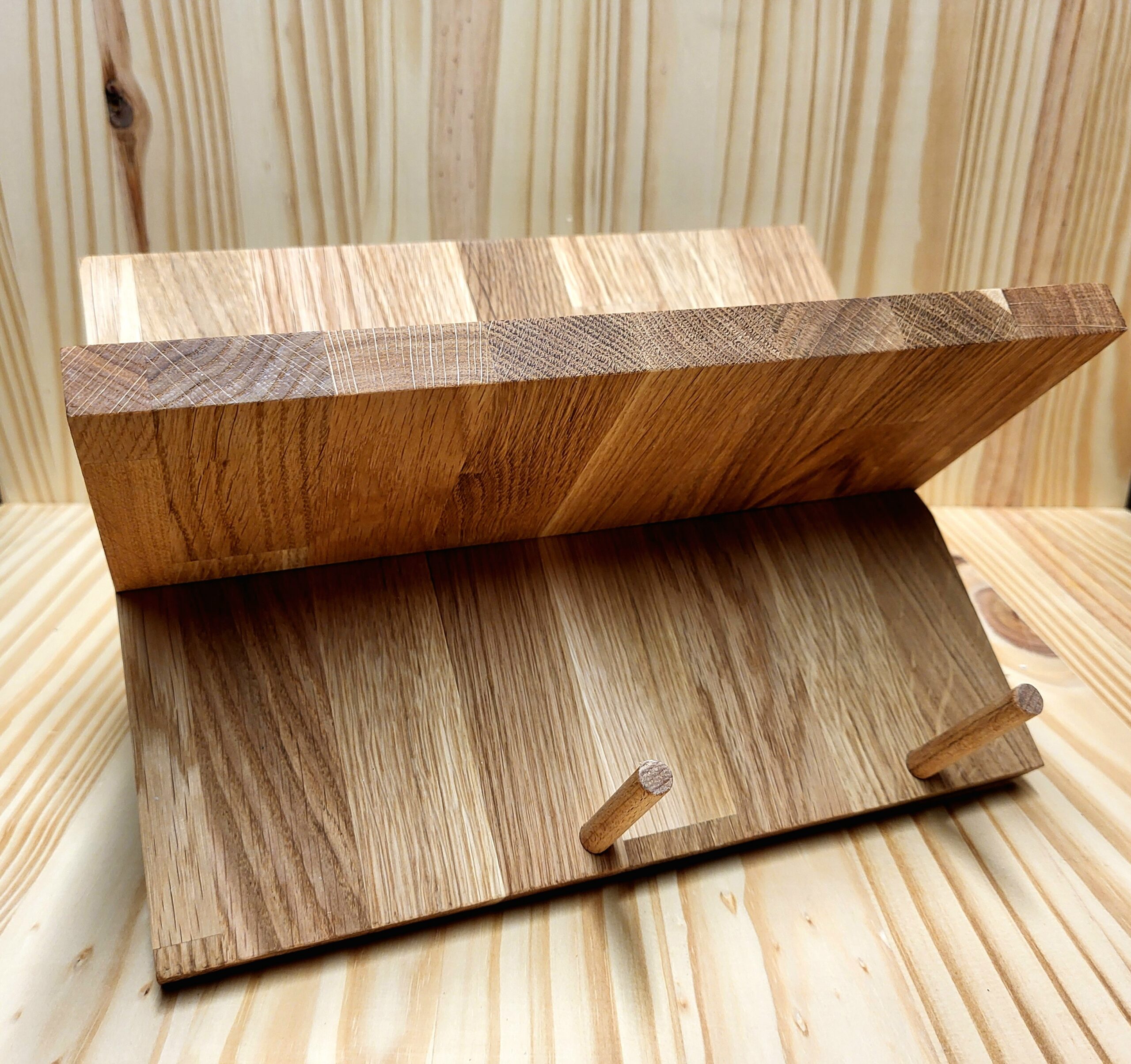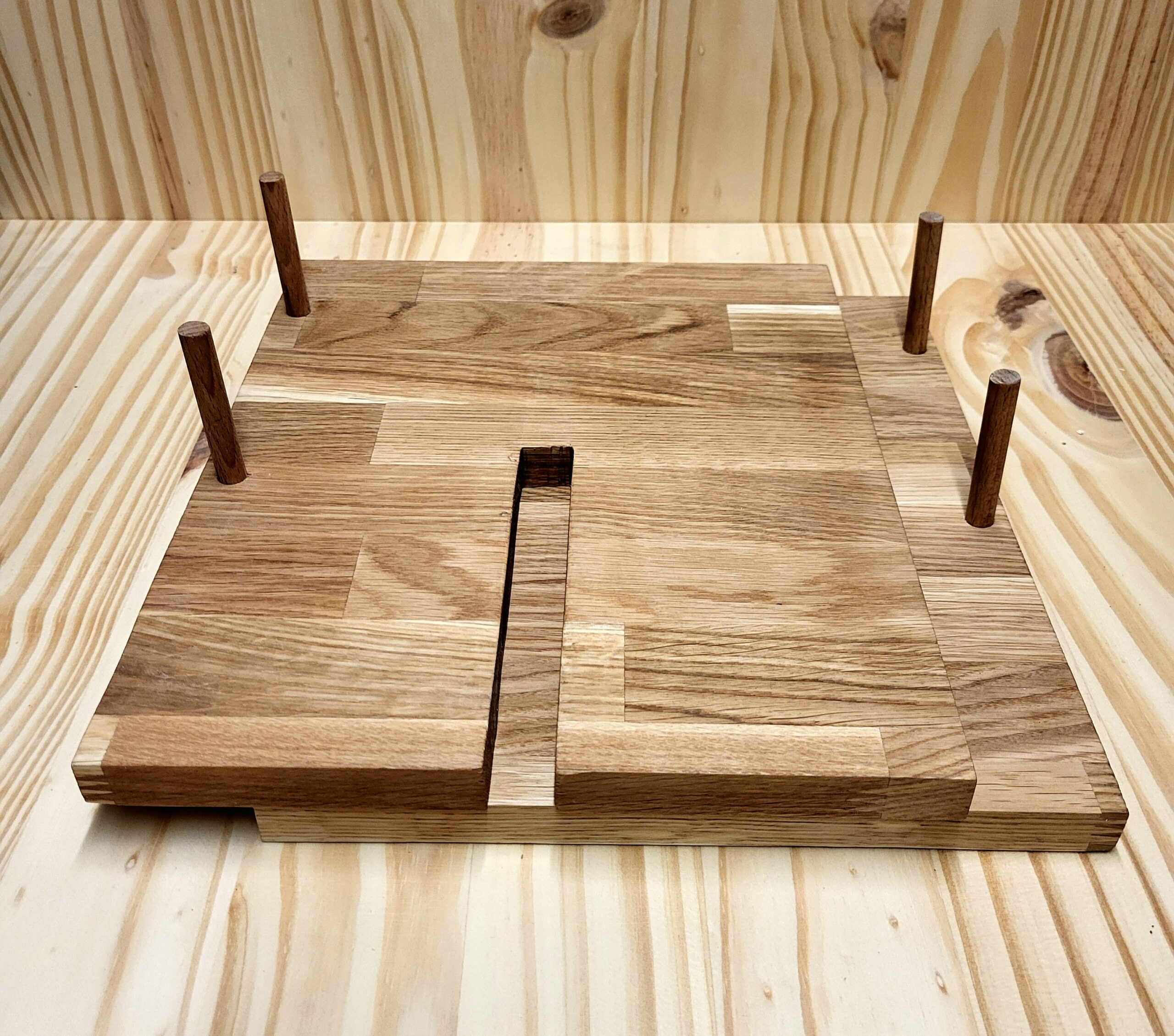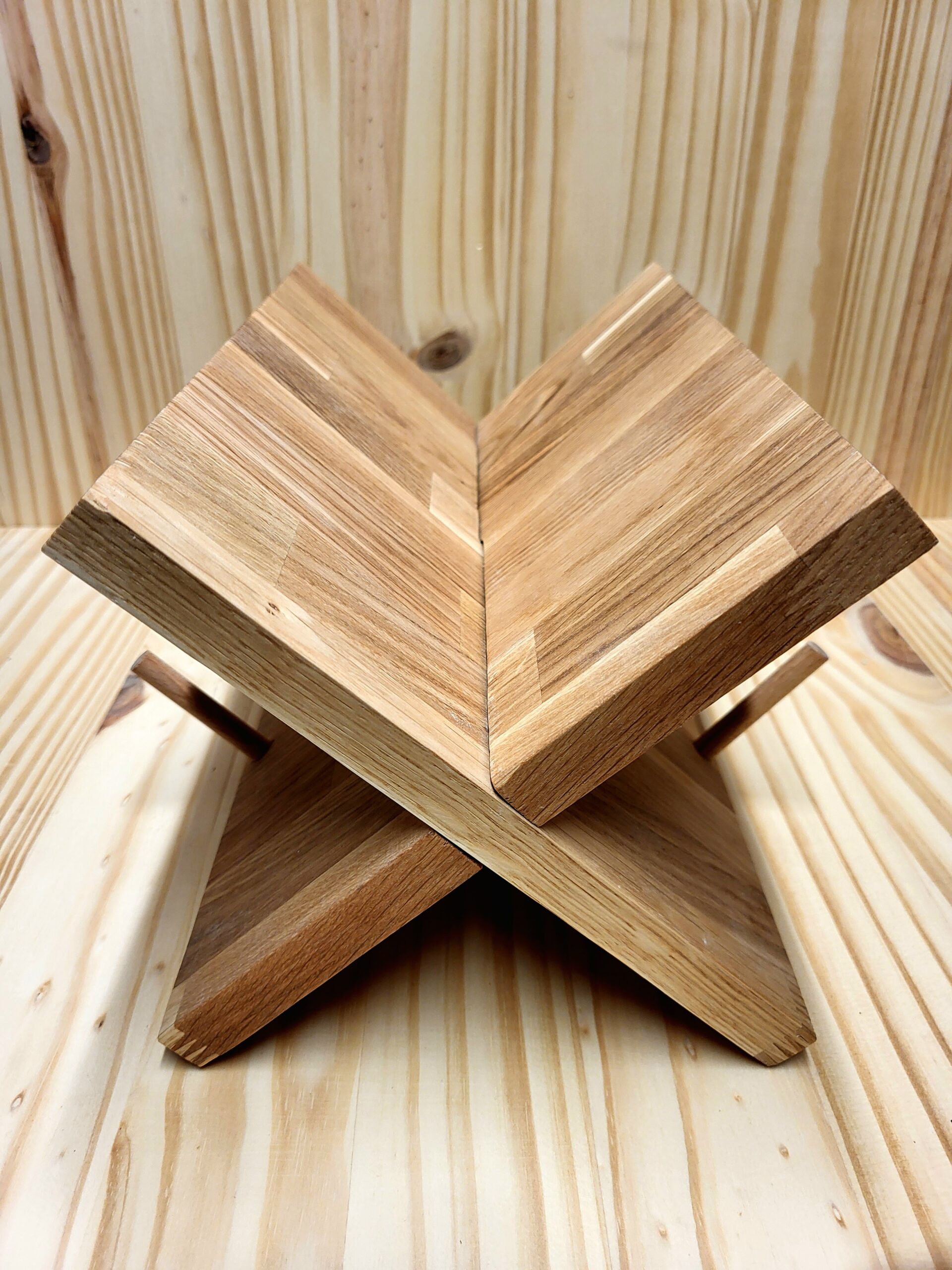 Porte-bouteilles, entièrement en chêne, pouvant accueillir 3 bouteilles (et une petite en bas). Les cales sont en hêtre.